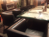 てつくられている。カウンターに一般的な椅子の倍近く幅広のソファーチェアーを置いているのも、