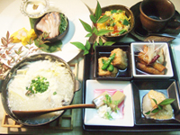 料理は愛知県から直送した三河鶏の炭火焼や、福岡から取り寄せた大豆で作る手作り豆腐なと、これ