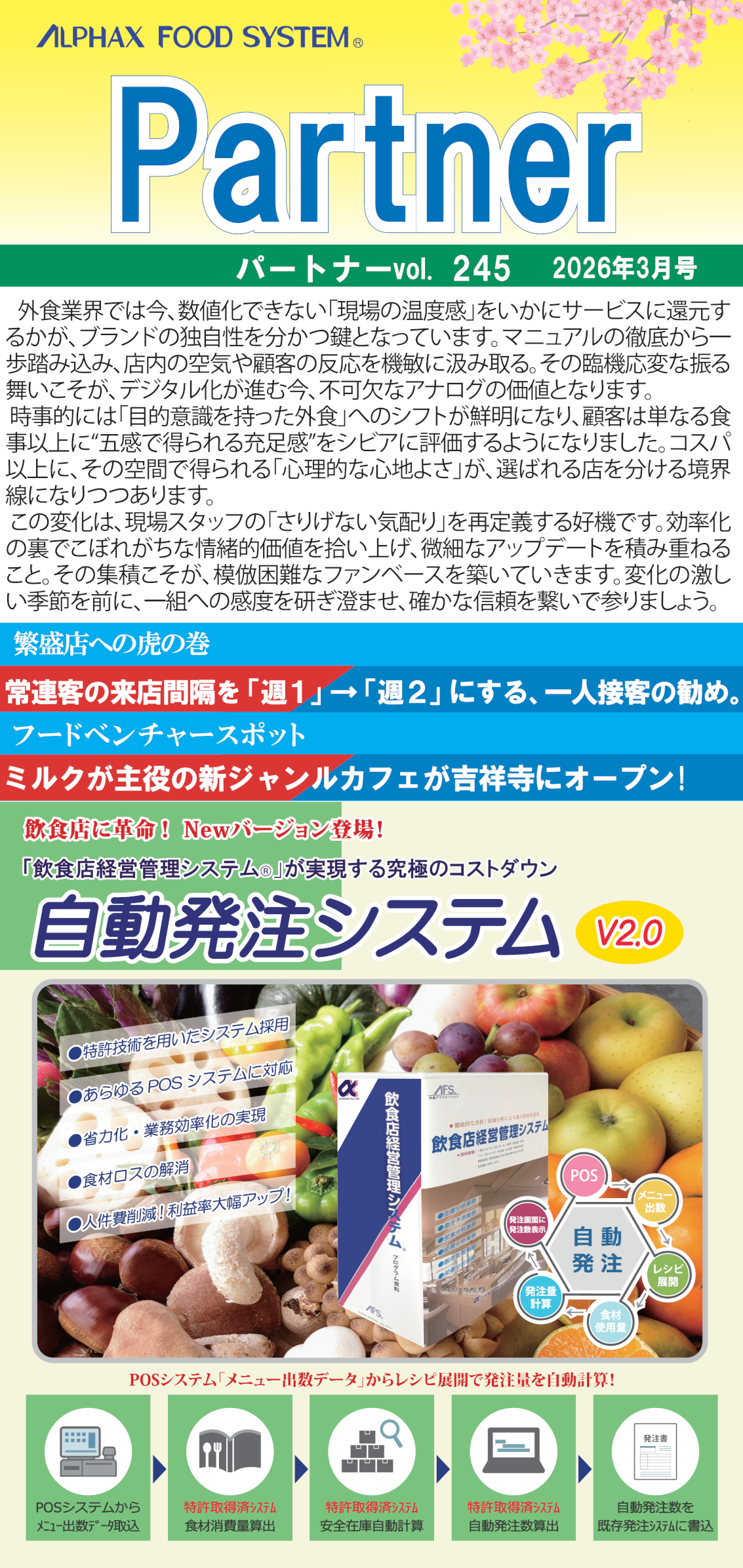 あらゆる飲食企業に対応し、飲食店経営に発生するあらゆる業務を 集約管理し、飲食店の食材発注/在庫ロスの圧縮で究極のコストダウンを 実現するシステムです。